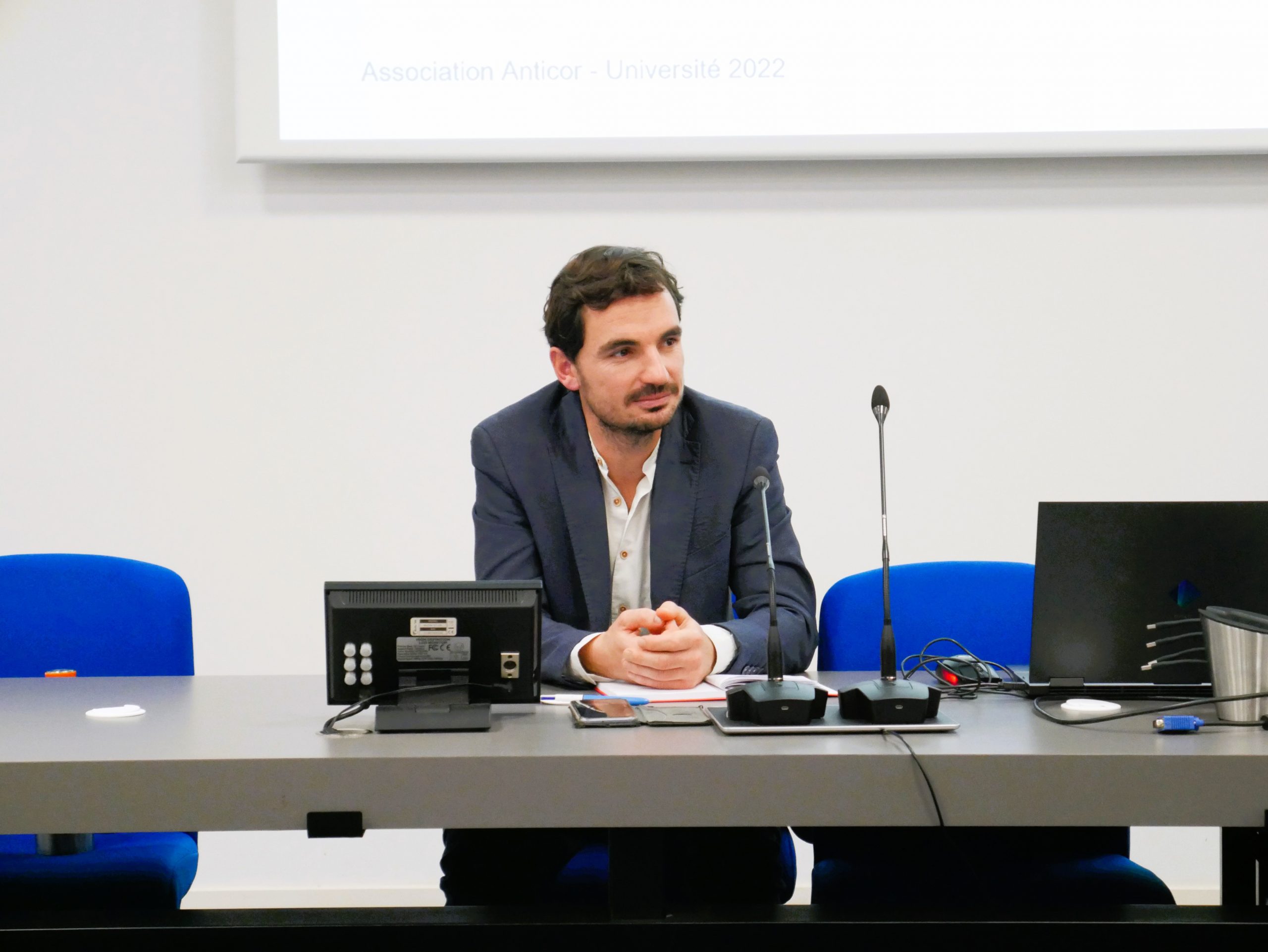La première table ronde, intitulée « Le sport à l’épreuve de la corruption » était présentée par Alexandre CALVEZ (administrateur d’Anticor) et Guillaume DELALIEUX (Professeur des universités en sciences de gestion, La Rochelle Université).