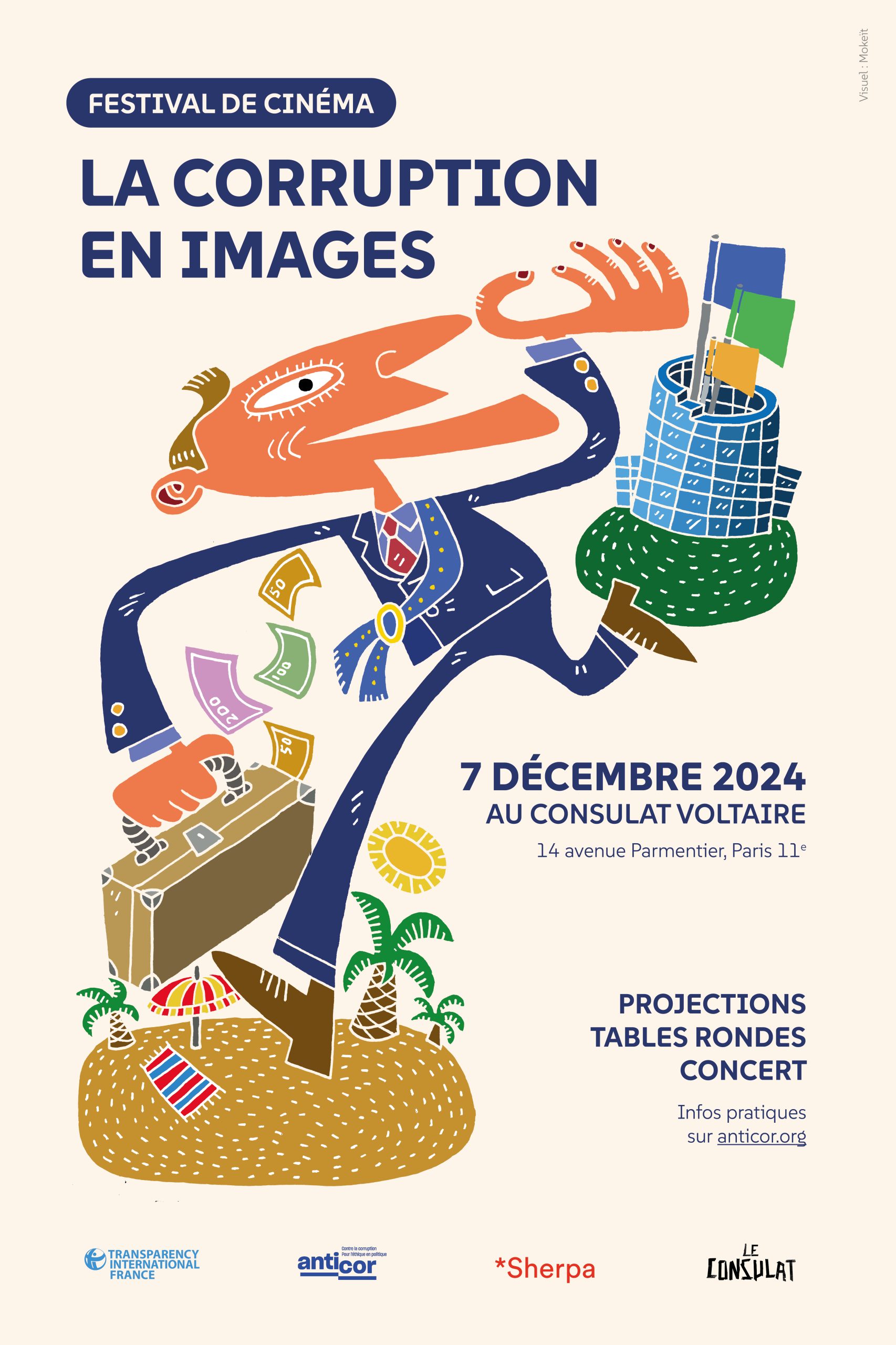 Anticor co-organise la deuxième édition du festival de cinéma La Corruption en Images, avec les associations de lutte contre la corruption Sherpa et Transparency International, le samedi 7 décembre 2024 au Consulat Voltaire (Paris 11e).
